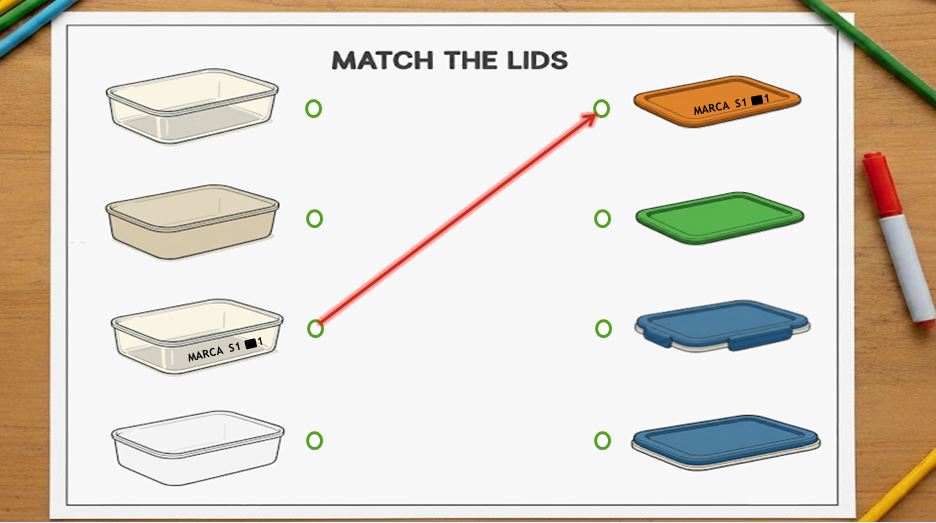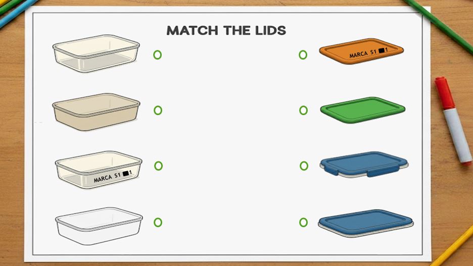 Identificación Inmediata: Facilita el emparejamiento rápido de envases y tapas en entornos compartidos o eventos sociales, evitando confusiones.